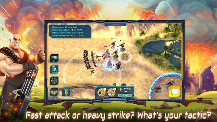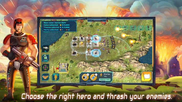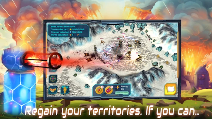 You don't fight alone. Command one of 3 unique heroes and unleash their game-changing abilities. Will you decimate foes with Miss Hit's powerful shots, freeze them with Ice Ace's cryodrones, or engulf them in Sand Anomaly's deadly sandstorm?