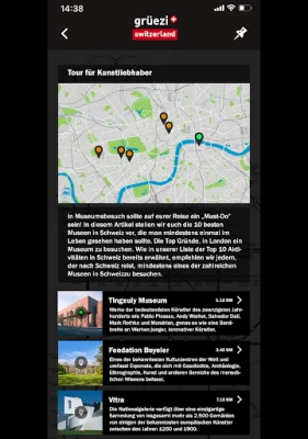 But the app has even more to offer: As a bonus, sightseeing and leisure offers, a list of videos, social media links and webcams for each destination, providing a virtual insight in real time. All in all, an all-round package for holidaymakers, new Swiss and those who want to become one.