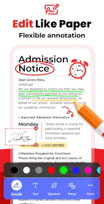 Automatically scan and list all PDFs on your device, giving you quick access to them all. Easily doodle, add text, and sign with different colors, enjoying a lot of convenience with this PDF Reader.