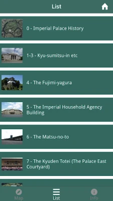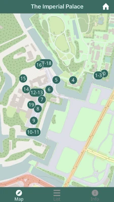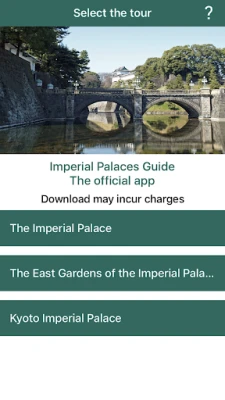 “Palaces Guide” App provides photographs related to the audio tours featured in the app: the Imperial Palace, the East Gardens of the Imperial Palace, and the Kyoto Imperial Palace. After downloading the app, users select a language and then choose from the three tours displayed on screen. This will display a map of the tour area and the audio guide points. If the app is allowed access to a device’s GPS functionality, the app will notify users when they approach a location for which commentary is available, and will show the users where they are on the map and audio commentary locations nearby. ■ Developer credits The Imperial Household Agency ■ Notes 1. Please walk with care when viewing the map screen on the app. 2. Some content is provided through links to external sources (e.g. the Imperial Household Agency website). Please note that data rates will apply when connecting to external links. 3. The app cannot provide positional notifications on devices without GPS functionality.