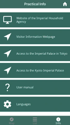 “Imperial Palaces Guide” App is the official app of the Imperial Household Agency in Japan. It serves as the audio guide for visitors to the Imperial Palace in Tokyo, the East Gardens of the Imperial Palace, and the Kyoto Imperial Palace, and provides tour content in six languages: Japanese, English, Chinese, Korean, French and Spanish.