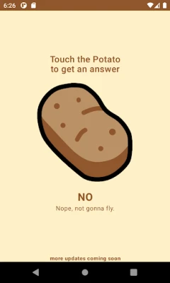 This app is intended for entertainment and curiosity purposes only. While it's fun to receive quick 'YES' or 'NO' answers, always remember that significant decisions should be based on solid information and careful considerations. The Potato does not replace careful deliberation or consulting professionals when necessary. Use responsibly and exercise common sense when making important choices in your life.